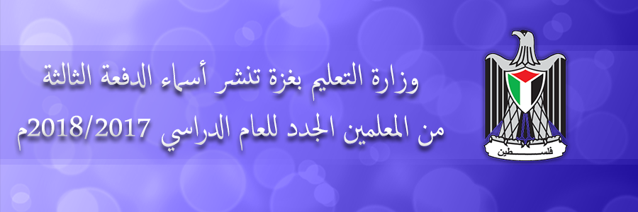 وزارة التعليم بغزة تنشر أسماء الدفعة الثالثة من المعلمين الجدد للعام الدراسي 2017/2018م