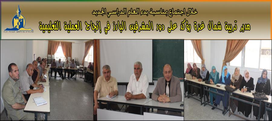 أكد مدير التربية والتعليم في شمال غزة أ.مدحت قاسم، على أهمية دور المشرفين التربويين في إنجاح العملية التعليمية وتحقيق مقاصدها. مهنئا إياهم بافتتاح العام الدراسي الجديد.