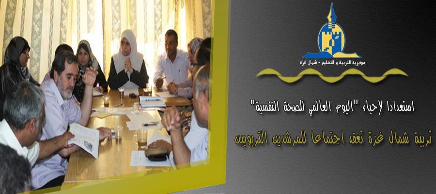 عقدت مديرية التربية والتعليم في شمال غزة، (قسم الإرشاد والتربية الخاصة)، اجتماعاً للمرشدين التربويين بالمديرية، وذلك للوقوف على الاستعدادات التي تجريها المديرية لإحياء فعاليات "اليوم العالمي للصحة النفسية" والذي يصادف العاشر من الشهر القادم.