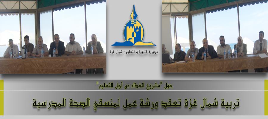 عقدت مديرية التربية والتعليم في شمال غزة، (قسم الصحة المدرسية) ورشة عمل لمنسقي الصحة المدرسية العاملين في المدارس المشاركة في مشروع الغذاء من أجل التعليم والبالغ عددها (29) مدرسة.
