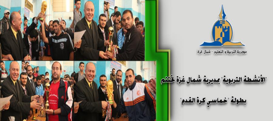 اختتم قسم الأنشطة التربوية بمديرية التربية والتعليم في شمال غزة، بطولة "خماسي كرة القدم" لكافة المراحل الدراسية، وذلك في سياق الخطة السنوية العامة للإدارة العامة للأنشطة التربوية، الرامية الى صقل قدرات ومواهب الطلبة المختلفة.
