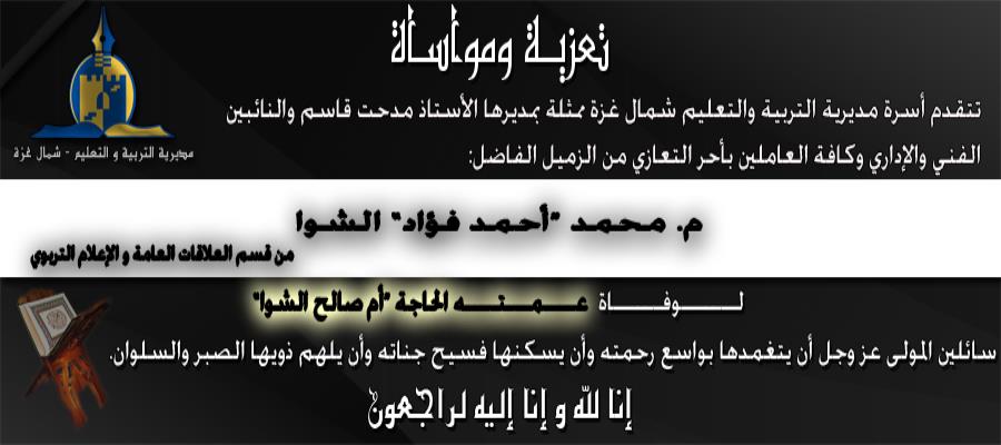 احر التعازي للزميل المهندس محمد محمد فؤاد الشوا بوفاة عمته الحاجة: أم صالح الشوا