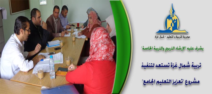 عقدت مديرية التربية والتعليم في شمال غزة (قسم الإرشاد التربوي والتربية الخاصة)، اجتماعا تشاوريا لوضع اللمسات الأخيرة للإعلان عن بدء تنفيذ فعاليات مشروع "تعزيز التعليم الجامع" في أربعة من مدارس المديرية والذي سينطلق خلال ديسمبر القادم ويستمر لعدة أشهر.
