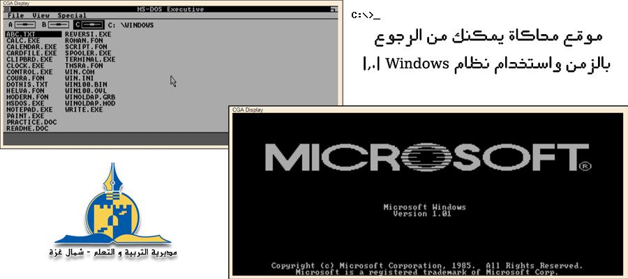 يمكنك الدخول إلى الموقع والاستمتاع بالعمل على نظام Windows 1.01 من : هنا