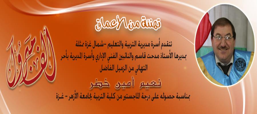 تهنئة رسالة الماجستير من الزميل الفاضل نعيم خضر