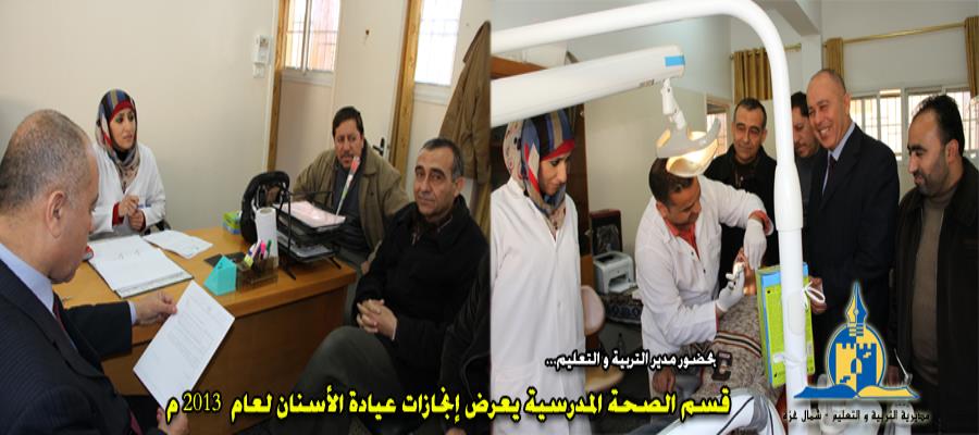 بحضور مدير التربية والتعليم أ. مدحت قاسم و الوفد المرافق له النائب الفني أ. موسى شهاب, و رئيس قسم الصحة المدرسية أ. ميسرة عوكل, و رئيس قسم العلاقات العامة و الإعلام أ. إسماعيل البياري, و استعرض كل من د. صابر أبو عيدة, و د. لارا أبو عمر أخصائي طب و جراحة الفم و الأسنان اليوم في عيادة الأسنان التابعة لمديرية التربية و التعليم – شمال غزة أهم إنجازات عيادة الأسنان للعام 2013 م .