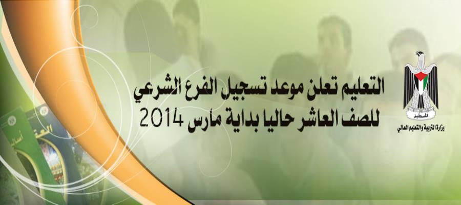 أعلنت وزارة التربية والتعليم العالي بدء التسجيل لفرع التعليم الشرعي للعام الدراسي 2014-2015, حيث سيتم تخيير طلبة العاشر بدخول الشرعي وذلك اعتباراً من بداية شهر مارس القادم.
