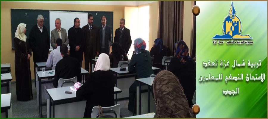 عقدت مديرية التربية والتعليم في شمال غزة، الامتحان النصفي للمعلمين الجدد بمشاركة (57) من المعلمين والمعلمات الجدد الذين تم تعيينهم مطلع العام الدراسي الحالي.