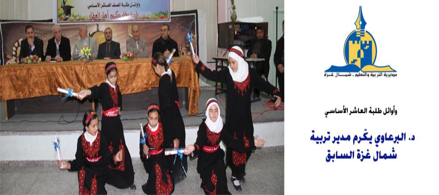 في أجواء احتفالية مفعمة بمشاعر الود والتقدير والوفاء، كرّمت وزارة التربية والتعليم العالي ومديرية التربية والتعليم- شمال غزة، مديرها السابق أ. مدحت قاسم، والطلبة الأوائل على مستوى الصف العاشر الأساسي.