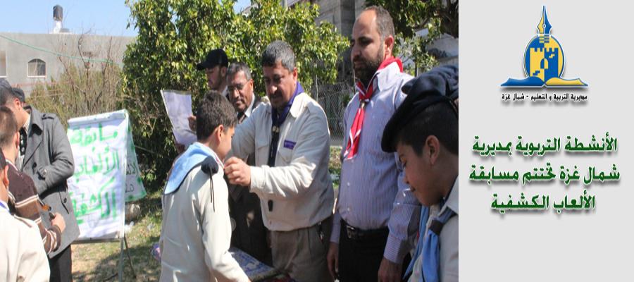اختتمت مديرية التربية والتعليم في شمال غزة (قسم الأنشطة التربوية)، مسابقة الألعاب الكشفية الرياضية التي أقيمت في المخيم الدائم لمجموعة القدس الكشفية بحضور رئيس شعبة الأنشطة أ. تيسير أبو عميرة، ومشرف الكشافة أ. علاء فرحات، ومشرف النشاط الثقافي أ.عطية الحاج أحمد، ورئيس مجلس إدارة مجموعة القدس الكشفية أ. إبراهيم مسعود.