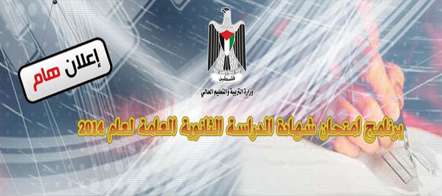 برنامج امتحان شهادة الدراسة الثانوية العامة لعام 2014