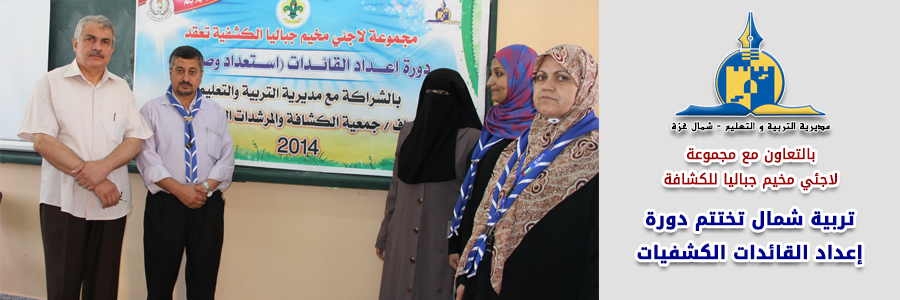 اختتمت مديرية التربية والتعليم في شمال غزة (قسم الأنشطة التربوية) دورة إعداد القائدات الكشفيات التي استمرت على مدار ثلاثة أيام بمركز التدريب التابع للمديرية و بمشاركة (35) قائدة كشفية من مدارس المديرية و مجموعة لاجئي مخيم جباليا.
