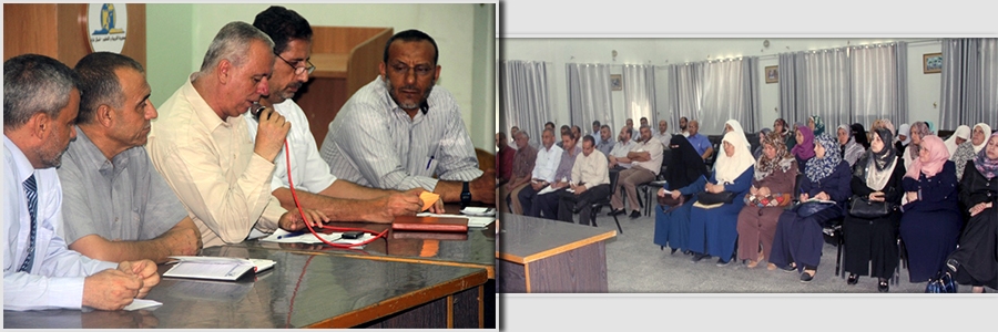 وفي كلمته رحب أ. أبو حصيرة بالحضور، مثمناً دور مدراء المدارس ومديراتها خلال العام الدراسي الماضي في خدمة العملية التعليمية بالرغم من الظروف الصعبة التي يمرون بها جراء حرمانهم من رواتبهم.