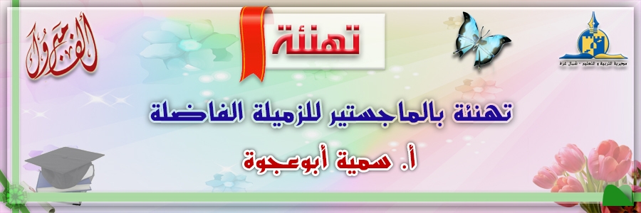 تهنئة بالماجستير للزميلة الأستاذة سمية أبوعجوة
