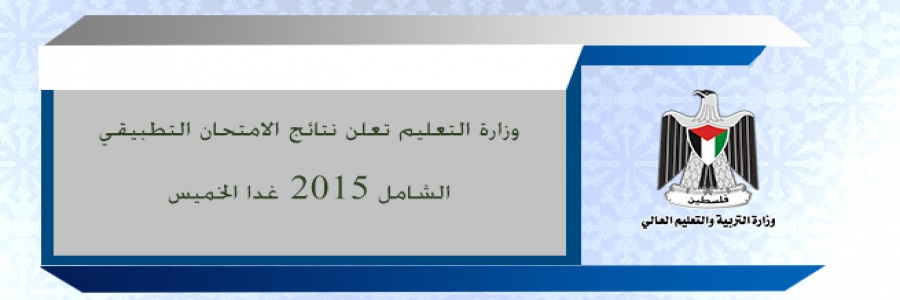 أعلن د. أيمن اليازوري الوكيل المساعد لشئون التعليم العالي بوزارة التربية والتعليم العالي أن نتائج امتحان التطبيقي الشامل للعام 2015 سيتم الإعلان عنها يوم غد الخميس 3/9/2015م في تمام الساعة الثانية عشرة ظهرا عبر مؤتمر صحفي مخصص لهذا الغرض سيقام في قاعة الاجتماعات الكبرى بوزارة التربية والتعليم العالي.