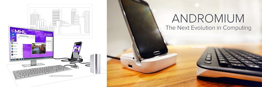 تطبيق Andromium OS المجاني والذي يدعم نظام أندرويد، حيث يُمكّن مستخدمي هذا النظام بتحويل هاتفهم إلى جهاز كمبيوتر “سطح مكتب” بكل ما تحمل معنى الكلمة، لكن بطبيعة الحال لم تكون عملية التصفّح عبر هاتفك الأندرويد سهلة على الرغم من أن التطبيق يدعم هذا.