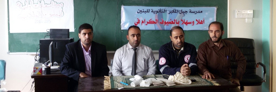 افتتحت مديرية التربية والتعليم في شمال غزة (قسم الصحة المدرسية) بمدرسة جبل المكبر الثانوية للبنين، بالتعاون مع جمعية الهلال الأحمر الفلسطيني، دورة تدريبية في الإسعافات الأولية لطلاب اللجنة الصحية بالمدرسة.