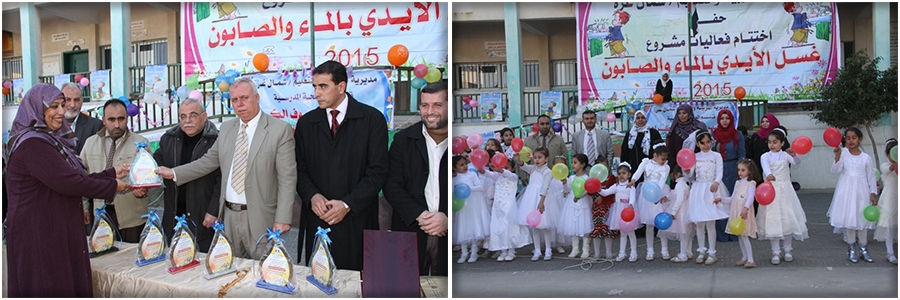 أقامت مديرية التربية والتعليم في شمال غزة، (قسم الصحة المدرسية)، احتفالاً كبيرًا لمناسبة اختتام فعاليات مشروع غسل الأيدي بالماء و الصابون، بالتعاون مع المنظمة الأممية "اليونيسيف"، بمدرسة عوني الحرتاني الأساسية للبنات.