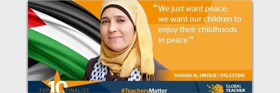 حصلت المعلمة حنان الحروب والتي تدرس في مدرسة بنات سميحة خليل بمحافظة رام الله والبيرة على مرتبة متقدمة ضمن أفضل 10 معلمين في العالم، والتي تقدمها مؤسسة “فاركي فاونديشن” العالمية المختصة في تبني مبادرات التعلم في بريطانيا.