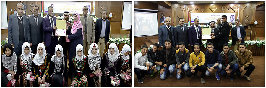 كرّمت الإدارة العامة للأنشطة التربوية في وزارة التعليم الطلبة الفائزين في مسابقة النشيد الجماعي "الكورال" وذلك في مقر جامعة فلسطين راعية المسابقة.