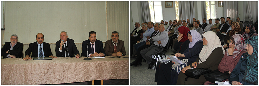 وعقد اللقاء في قاعة الانتفاضة بحضور مدير التربية والتعليم أ. محمود أبوحصيرة، ومدير الدائرة الإدارية أ. منير أبو زعيتر، ومدير عام وحدة الترخيص المهني أ. زياد المدهون، ورئيس قسم الكفاءة و الصلاحية د. عماد أبو سمعان، ورئيس قسم الاجراءات الإدارية أ. كمال المصري، ورئيس قسم العلاقات العامة والإعلام أ. اسماعيل البياري، ورؤساء الأقسام ومديري و مديرات المدارس في المديرية.