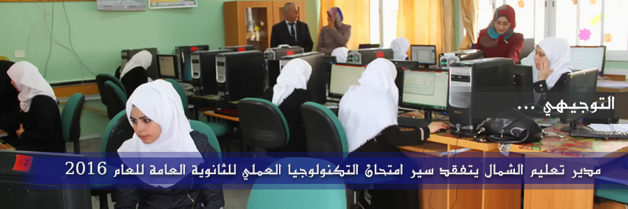 تفقد مدير التربية والتعليم في شمال غزة أ. محمود أبو حصيرة، سير امتحانات نهاية العام الدراسي 2015-2016م، في مبحث التكنولوجيا (العملي) لطلبة الثانوية العامة في جميع الفروع للطلبة النظاميين وطلبة الدراسة الخاصة.