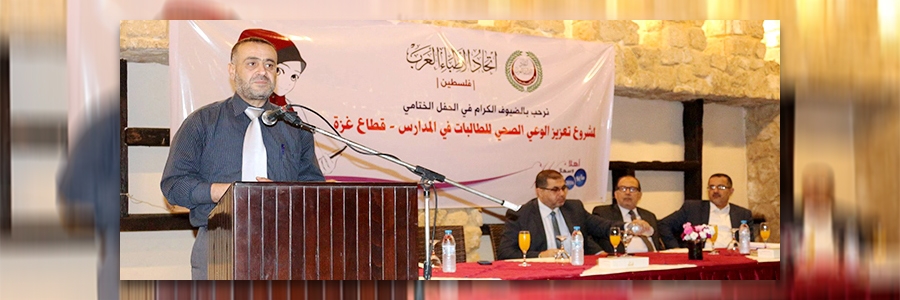 من جهته ألقى د. محمد العكلوك رئيس اللجنة المشرفة في اتحاد الأطباء العرب، كلمة أعرب من خلالها عن سعادته بما حققه هذا المشروع من نجاح، حيث تم عقد 16,400 جلسة تثقيفية للطالبات في 138 مدرسة في كافة محافظات قطاع غزة، هذا الى جانب عقد 400 جلسة تثقيفية للأمهات.