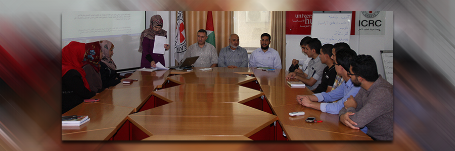 و حضر النقاش الذي عقد في قاعة الاجتماعات في الصليب الأحمر بغزة أ. أحمد أبو هربيد مدير دائرة شؤون الطلبة، أ. محمد نعيم رئيس قسم التوجيه و الإرشاد، أ. يوسف اليازجي و أمل الناعوق من اللجنة الدولية.