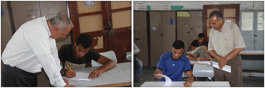 تفقد مدير التربية والتعليم في شمال غزة أ. محمود أبو حصيرة على رأس وفد تربوي، تنفيذ امتحان الاجتياز الموحد لبرنامجي محو الأمية وتعليم الكبار والتعليم الموازي بمدرسة بيت لاهيا الثانوية للبنين.