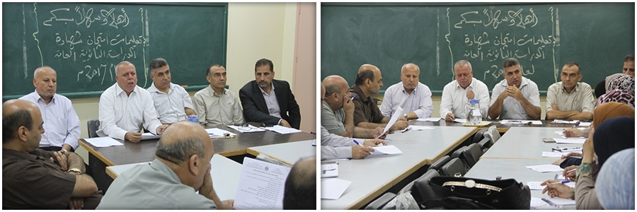 وحضر الاجتماع مدير التربية والتعليم أ. محمود أبوحصيرة، ومديري الدائرتين الإدارية والفنية أ. منير أبوزعيتر، و أ. موسى شهاب، ورئيس قسم الامتحانات أ. محسن سعد، ومدير دائرة وزارة النتائج بالوزارة أ. جمال يوسف.