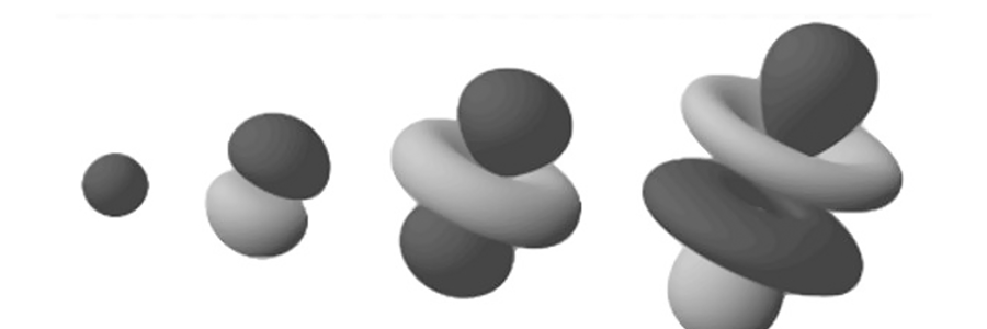 نموذج ثلاثي الأبعاد لمدارات الإلكترون بالاعتماد على نموذج السحابة الإلكترونية.