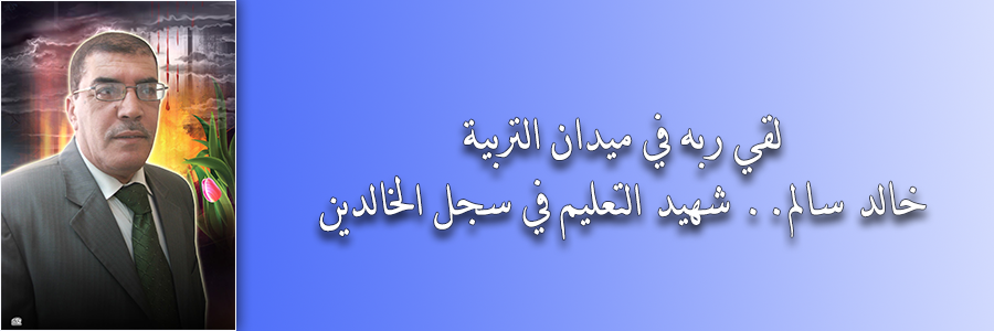 الحدث: روح اشتاقت لبارئها فحلّقت عاليًا لملاقاته.. إنها روح المشرف التربوي أ. خالد سالم "أبومؤمن"، ليكون آخر عهدها بهذه الدنيا كلمات من نور أسداها لطالبات ومعلمات "هايل عبد الحميد" ليواصلن المسير في دروب المجد المتدفق من بين ثنايا حِلق العلم وجلسات الوعي والمعرفة، حيث كان خارجا لتوّه من حصة إشرافية عند معلمة اللغة العربية في المدرسة.