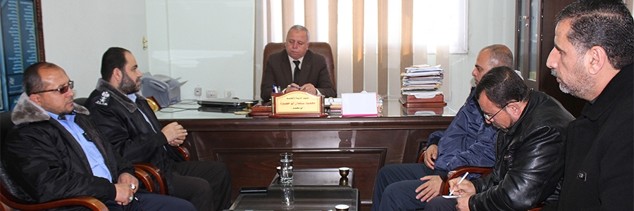 وكان في استقبال الوفد إلى جانب أ. أبو حصيرة، مدير الدائرة الإدارية أ. منير أبو زعيتر، ورئيس قسم العلاقات العامة والإعلام أ. إسماعيل البياري، فيما ضم الوفد كل من مدير العلاقات العامة العقيد إبراهيم أبو عوكل، ومدير دائرة العلاقات العامة بالمباحث المقدم رائد العبيات، والرائد إبراهيم خلّة، والرائد ديب ثاري.