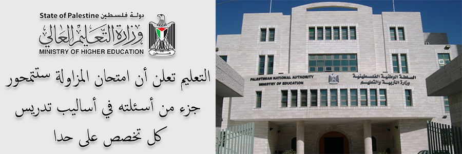 أعلنت وزارة التربية والتعليم العالي بغزة أن امتحان مزاولة المهنة المنوي تطبيقه في 19 فبراير الحالي ستتمحور جزء من أسئلته في أساليب تدريس كل تخصص على حدا.