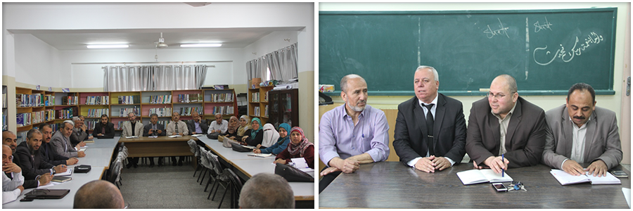 ناقش مدير عام الإشراف و التأهيل التربوي أ. محمود مطر جملة من القضايا التربوية المهمة مع المشرفين التربويين بمديرية التربية و التعليم في شمال غزة.