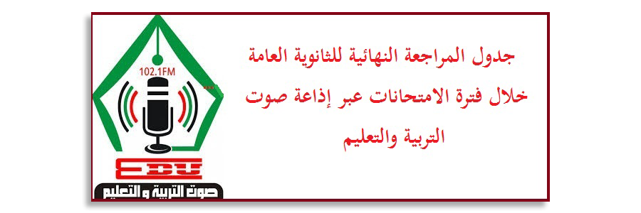 جدول المراجعة النهائية للثانوية العامة خلال فترة الامتحانات عبر إذاعة صوت التربية و التعليم 102,1FM