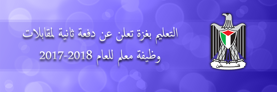 أعلنت وزارة التربية والتعليم العالي بغزة عن دفعة ثانية من مقابلات وظيفة معلم للعام 2017/2018.