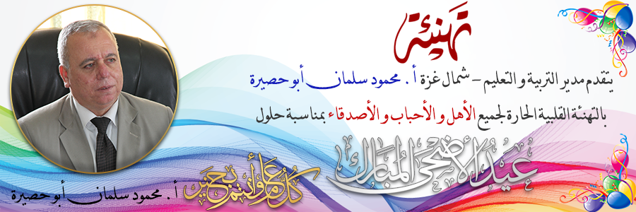 تهنئة قلبية حارة مقدمة من مدير التربية و التعليم - شمال غزة