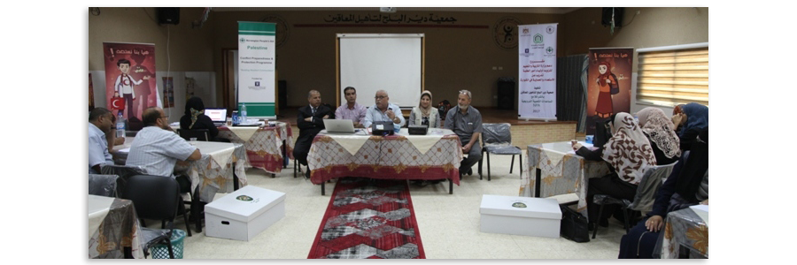 و عقدت وزارة التربية والتعليم العالي في مقر جمعية دير البلح دورة تدريبية لمدة 4 أيام استهدفت 85 معلماً ومعلمة ومنسق صحة من مختلف المدارس الحكومية لتدريبهم على عدة مفردات في مجال الحماية من الكوارث، وسيقوم هؤلاء المعلمين بتدريب أولياء الأمور كل في مدرسته في تدريب سيبدأ خلال الأسبوع المقبل ويستمر في الفصل الدراسي الحالي و ذلك بعد توجيه دعوات من المدارس لأولياء الأمور.