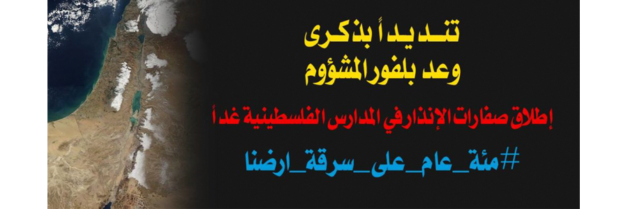 #مئة_عام_على_سرقة_ارضنا وذلك لإشراك أكبر قطاعات من الجماهير في التنديد بهذا الوعد المشؤوم بعد مرور مئة عام عليه.