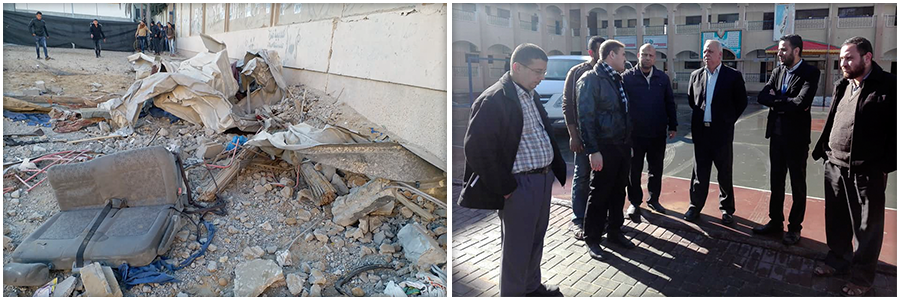 تفقد مدير التربية والتعليم في شمال غزة أ. محمود أبو حصيرة، الاضرار التي لحقت بمدرستي خليفة بن زايد وخليل الرحمن الثانويتين للبنين، والناجمة عن القصف الإسرائيلي الأخير.
