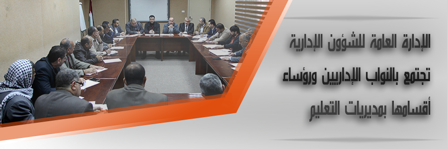 عقدت الإدارة العامة للشؤون الإدارية بوزارة التربية والتعليم العالي اجتماعاً موسعاً للنواب الإداريين ورؤساء الأقسام بمديريات التربية والتعليم بمحافظات غزة.