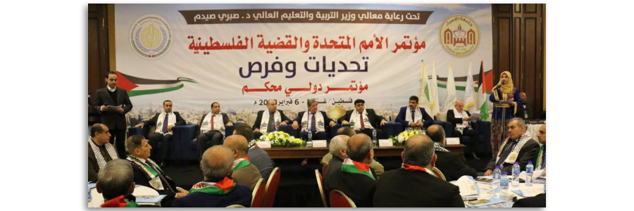 جاء ذلك خلال كلمته التي ألقاها نيابة عن وزير التربية والتعليم العالي الدكتور صبري صيدم في افتتاح المؤتمر العلمي الدولي الأمم المتحدة والقضية الفلسطينية تحديات وفرص التي نظمته جامعة الإسراء بغزة بحضور رئيس الجامعة د. عدنان الحجار ونخبة من الباحثين والأكاديميين.