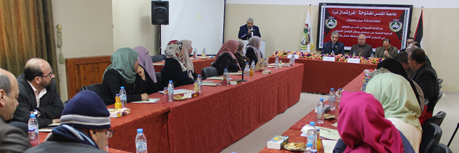 شاركت مديرية التربية والتعليم في شمال غزة بورشة عمل نظمتها جامعة القدس المفتوحة - فرع الشمال، بعنوان: "دور الإدارة التربوية في الحد من الظواهر السلبية المترتبة على استخدام وسائل التواصل الاجتماعي في المدارس الثانوية في محافظة شمال غزة".