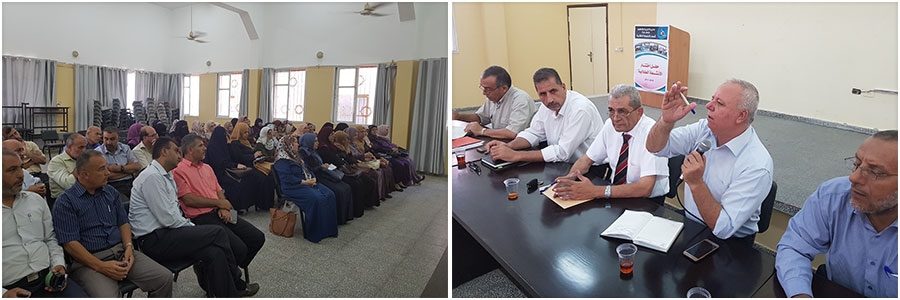 وحضر الاجتماع مدير التربية والتعليم أ. محمود أبو حصيرة، ومدير عام الإدارات المدرسية د. فتحي كلوب، ومديري الدائرتين الإدارية أ. منير أبو زعيتر، والفنية أ. موسى شهاب، ورئيس قسم الإدارات التربوية د. معين أبو جاسر.
