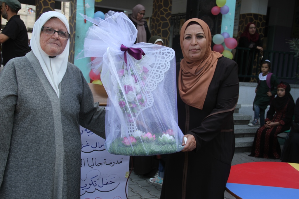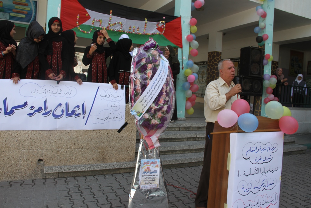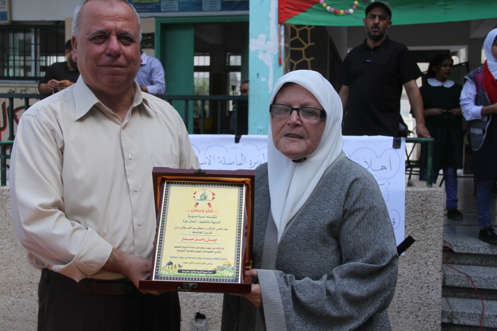 كرّمت مديرية التربية والتعليم في شمال غزة، المربية الفاضلة المديرة السابقة لمدرسة جباليا الأساسية "أ" للبنات أ. إيمان مسمار لبلوغها سن التقاعد من الوظيفة العمومية، بعد رحلة حافلة بالعطاء وخدمة الأجيال المتعاقبة من أبناء شعبنا.