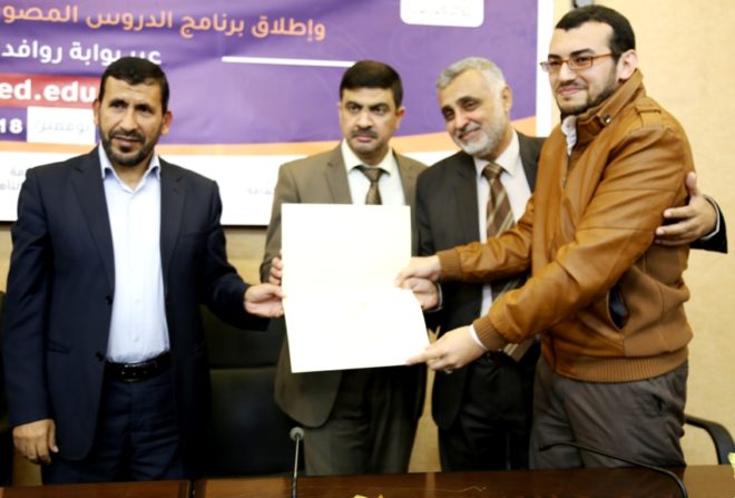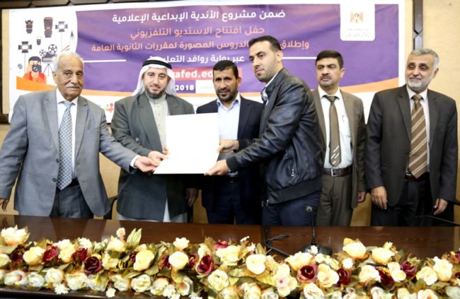 وفي نهاية الحفل جرى تكريم مدير العلاقات العامة بالوزارة أ. مدحت الزطمة الذي كان له جهود في تأسيس انشاء الاستديو التعليمي، كما تم تكريم فريق قسم التعليم الالكتروني الذي يشرف على موقع روافد التعليمي.