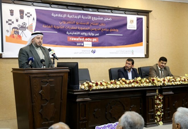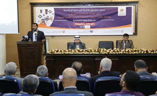 وتطرق ثابت لمراحل الوصول لهذا الإنجاز لافتاً إلى أن البدء كان بإنشاء إذاعة صوت التربية والتعليم بقرار من وزير التعليم السابق د. أسامة المزيني لبث دروس تعليمية وتثقيفية للطلبة والمجتمع، ثم واصلنا الجهد التطويري وصولاً لافتتاح الاستديو وانتاج الدروس التي تم وضعها على موقع روافد التابع للوزارة وهو الموقع التعليمي الأول على مستوى فلسطين، وفاز مؤخراً بجائزة نوعية ومتقدمة على المستوى العربي والاقليمي وهي جائزة سمو الشيخ سالم العلي الصباح للمعلوماتية في الكويت.