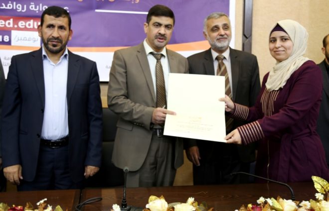 وحضر الحفل وكيل الوزارة الدكتور زياد ثابت، وعضو المجلس التشريعي د. يوسف الشرافي، والوكيل المساعد للتعليم العالي د. أيمن اليازوري وممثلين عن الحقل الأكاديمي والتربوي.