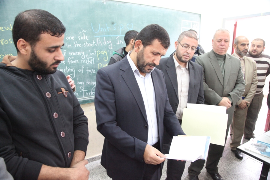 مدير تعليم شمال غزة يتفقد سير العملية التعليمية بمدرسة بيت لاهيا الأساسية "ب" للبنين